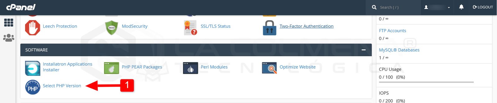 1. En la sección SOFTWARE haz clic en Select PHP Version