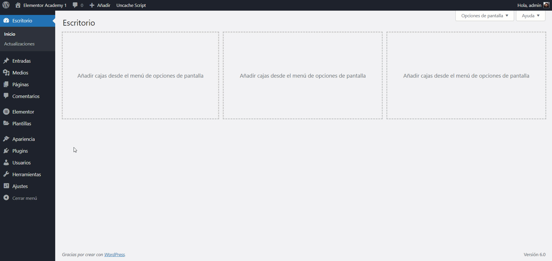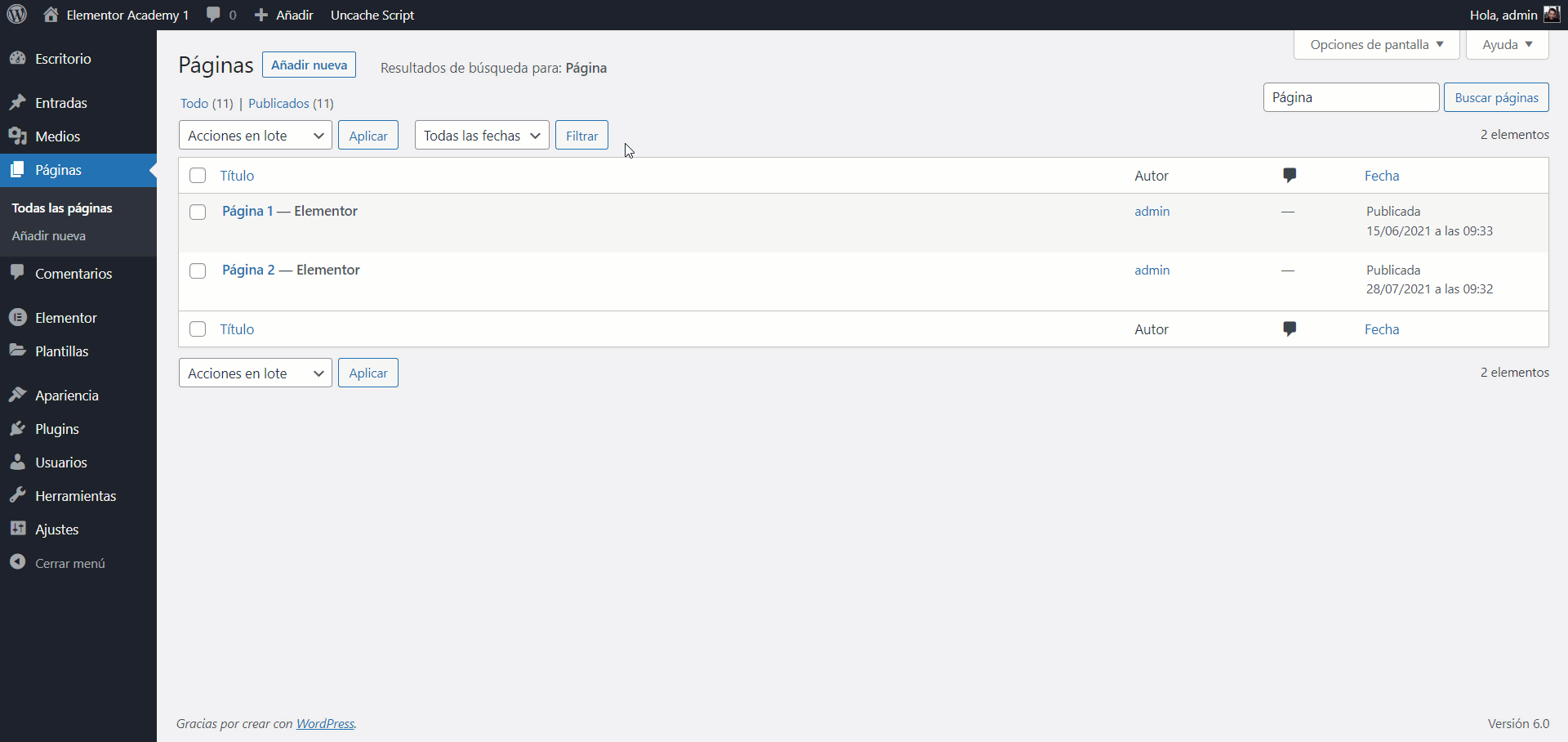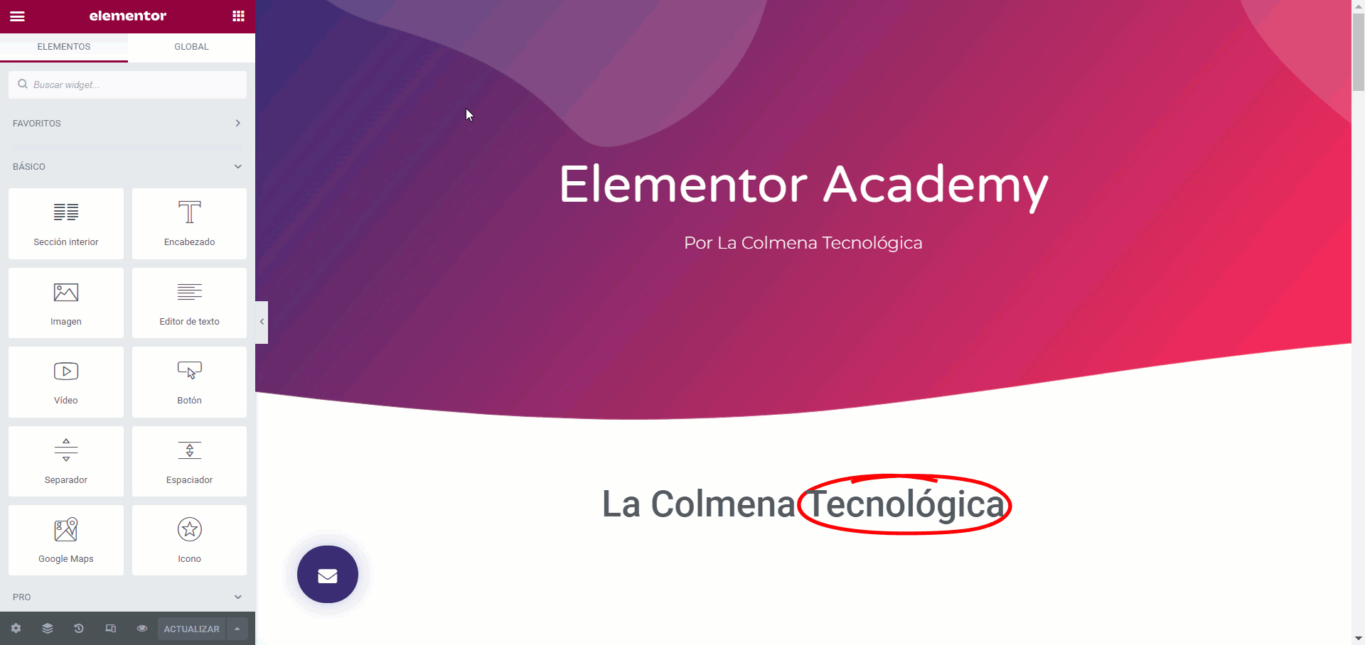 1. Inicia el constructor de Elementor entrando en cualquier página.
